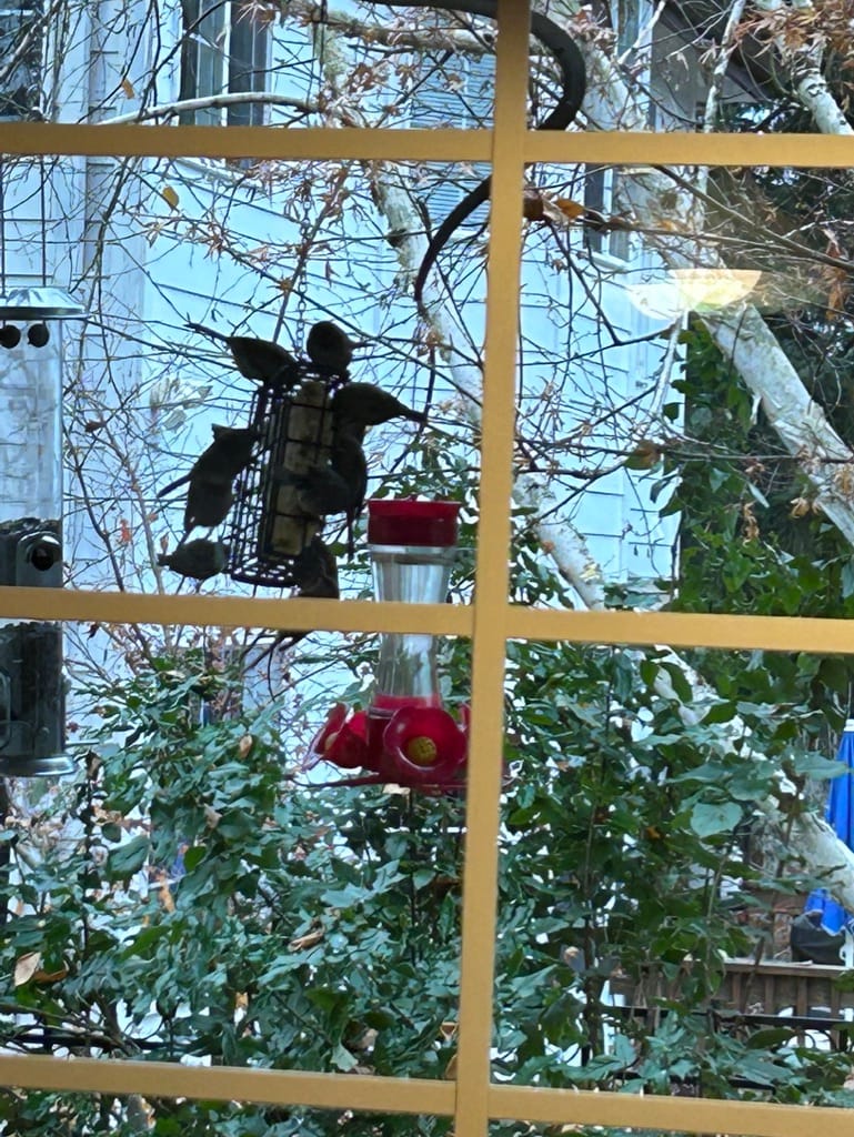 Today is the beginning of a national blizzard! Here in the PNW we are being snowed and iced in. Everyone is canceling appointments, meetings, even getting to the hospital is a challenge (just ask my daughter). The birds still keep arriving, though, especially since my spouse and I put up several bird feeders. thrushes, bushtits, jays, juncos, flickers, crow and hummers are feasting on thistle sunflower seeds and suet blocks. We have to change the hummingbird feeders sugar water every hour because it keeps freezing. It's 18 degrees F for heaven's sake!