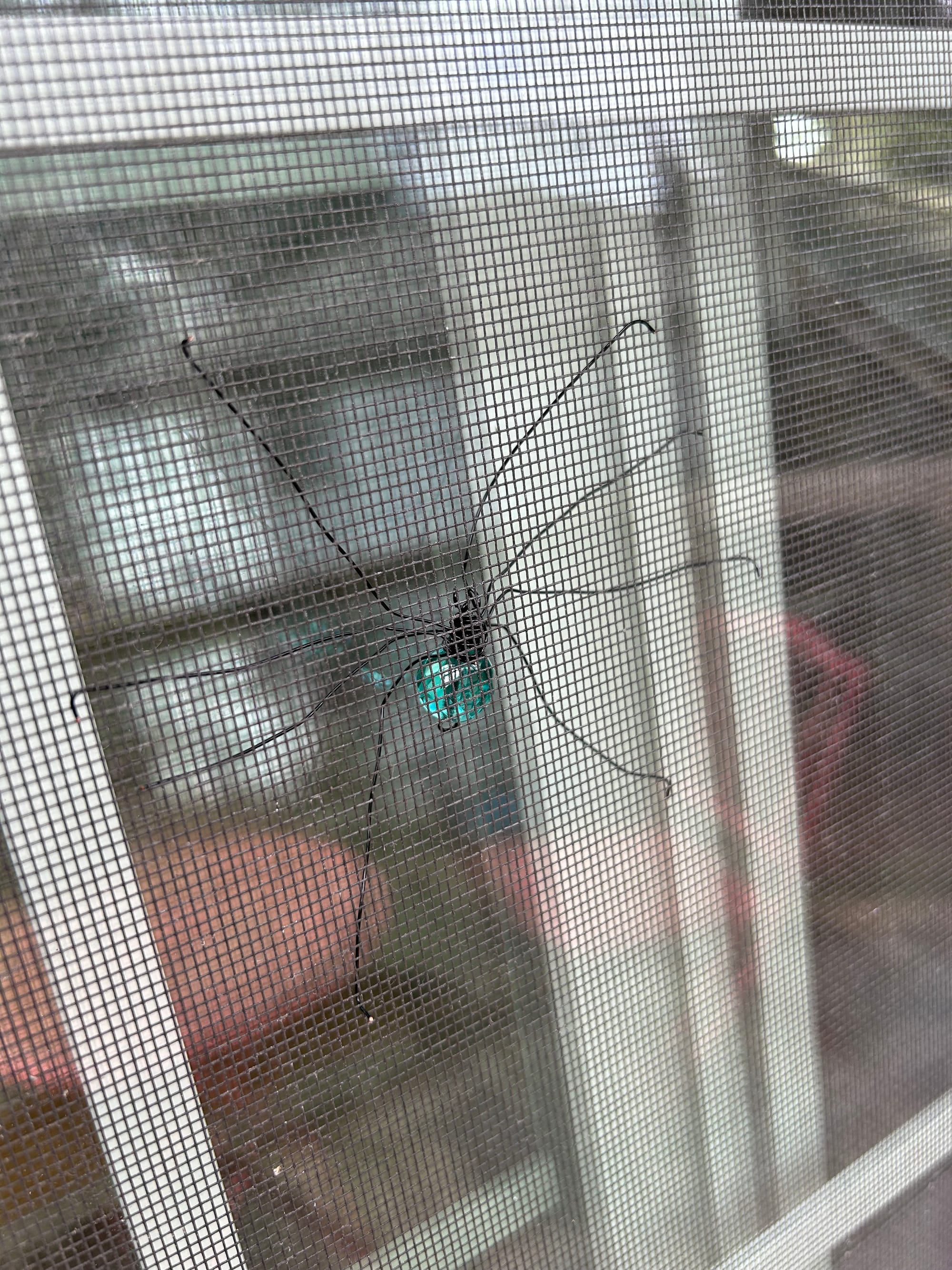 These bejeweled beauties I found at a craft fair last year. They hang onto your screen door and keep you from walking into it!. Lovely and creepy at the same time.